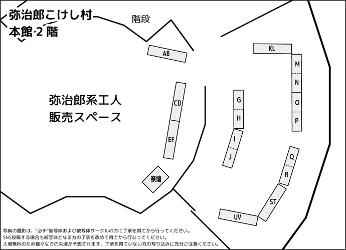 - 写真の撮影は、“必ず”被写体および被写体サークルの方に了承を得てから行ってください。弥治郎こけし村ふれあい祭り開催のため様々な方の来場が予想されます、了承を得ていない方の写り込みに充分ご注意ください。