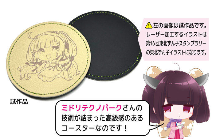 ミドリテクノパークさんが製作した東北ずん子天然皮革コースターをお送りいたします。