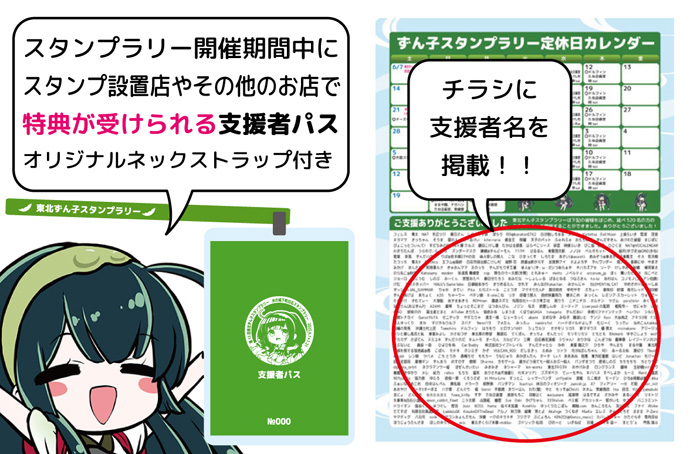 スタンプ設置店やその他のお店で支援者限定サービスが受けられる支援者パスもお送りいたします。