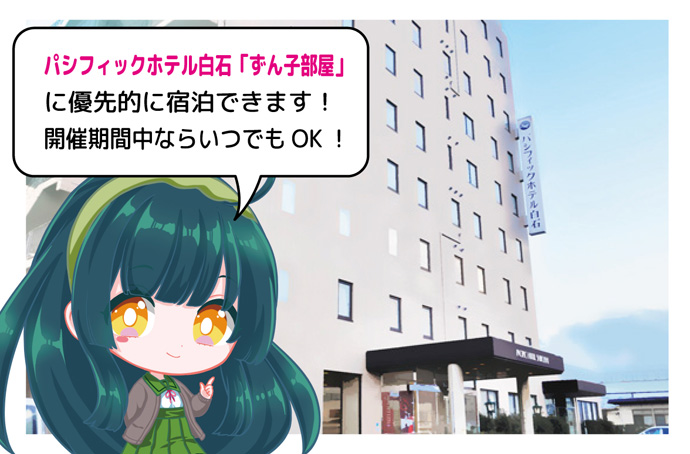 パシフィックホテル白石の「ずん子部屋」に宿泊(1名1泊)できます。